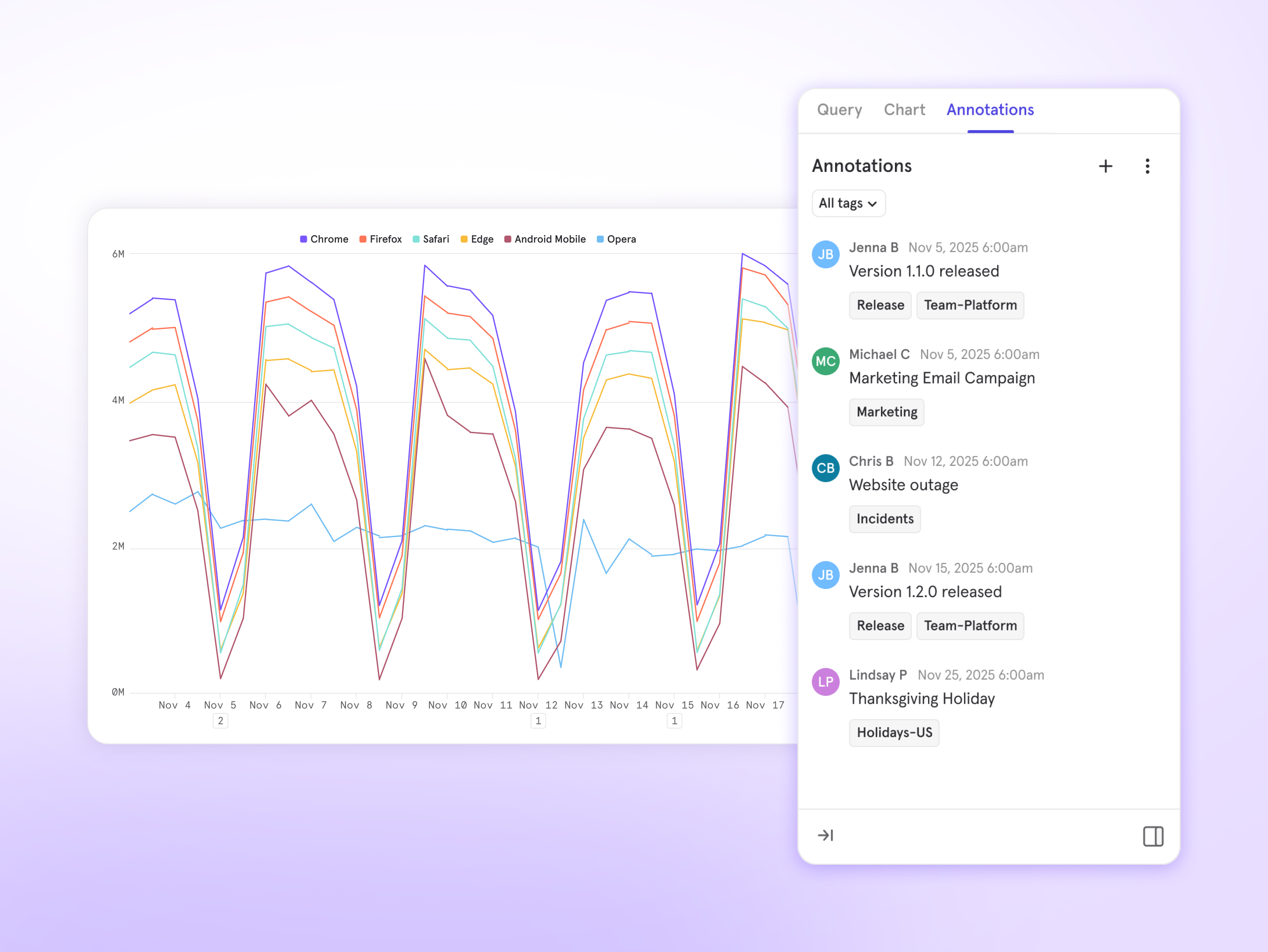 Review your metrics against different layers of context using Annotation tags and filters.
